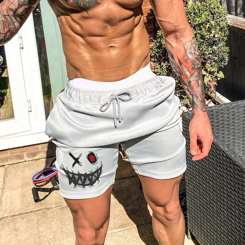 Men's Fashion Smiley Print Chic Casual Slim Fit Shorts