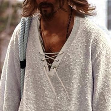 Men's Loose 3/4 Sleeve Chic Lace-up Linen Top