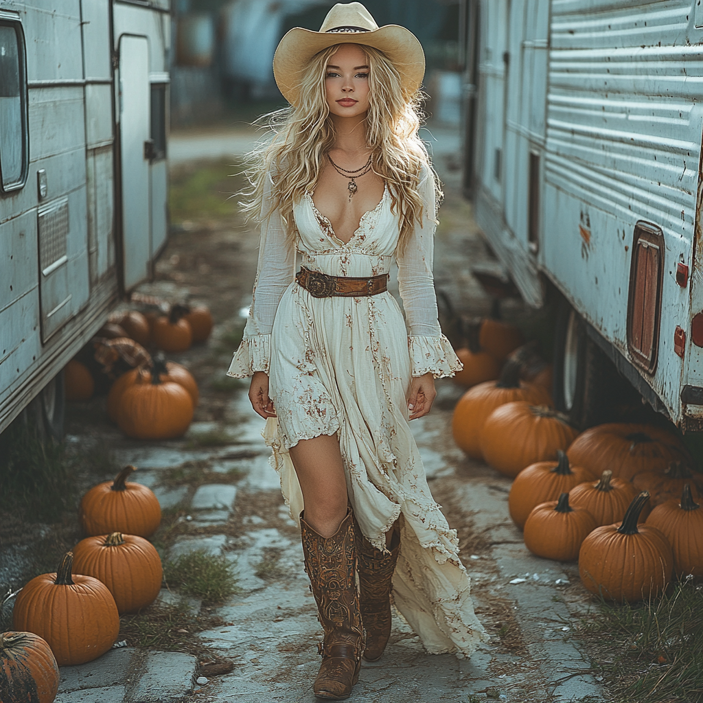 Vintage Cowgirl Style Halloween Chic Floral Dress